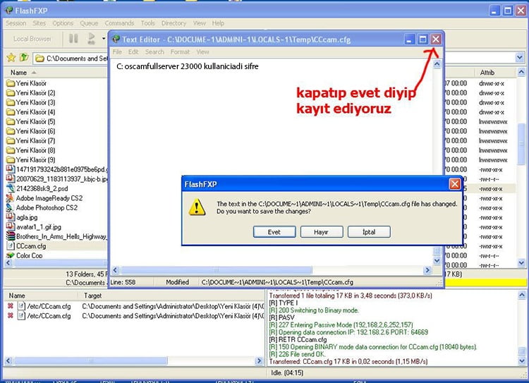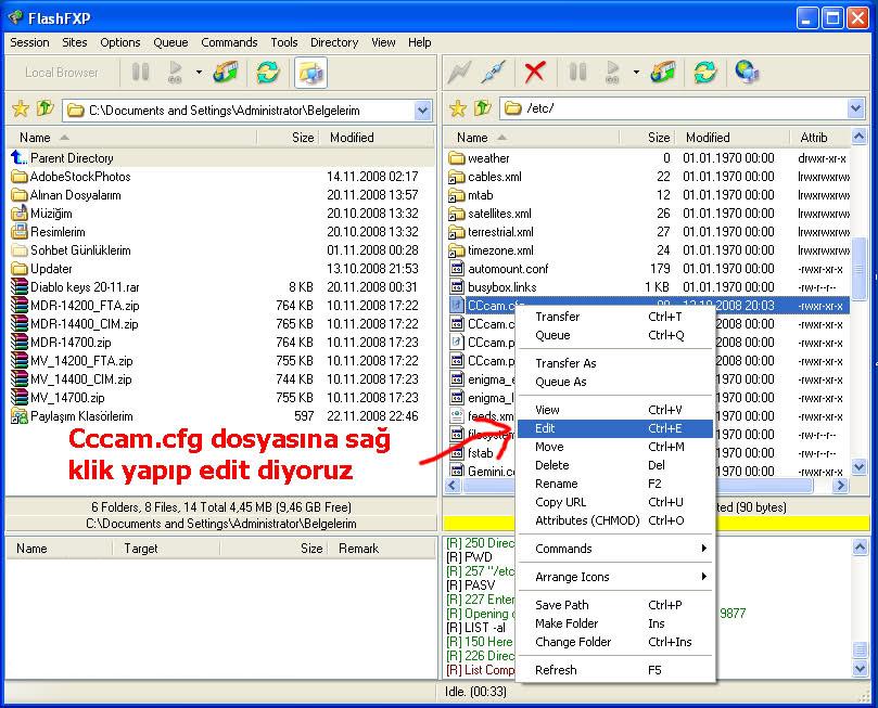 Yukarıdaki bilgileri doğru girmeniz yeterli diğer kutucuklar boş kalabilir. Bilgileri doğru girdiğimizden emin olduktan sonra alt sağda bulunan connect butonuna tıklıyoruz. Flash fxp programıyla enigma 2 uydu alıcınıza bağlanmak bu kadar kolay. Sıra geldi enigma2 cccam yükleme işlemine, bunu da sizler daha kolay yapın diye resimli olarak aşağıya paylaşıyorum. Resimlerdeki gibi sırasıyla kurulum işlemini yapabilirsiniz.